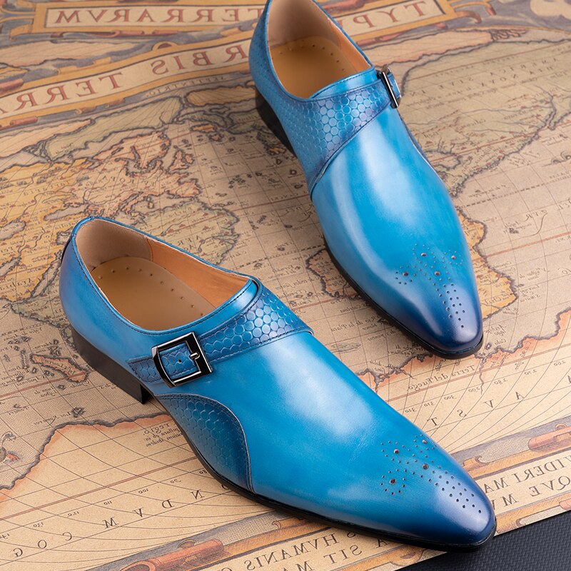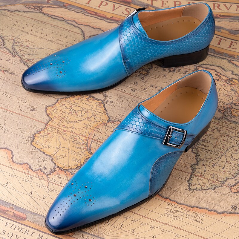 Home Men Leather Shoes Men Loafers Shoes Fashion Blue Breathable Handmade